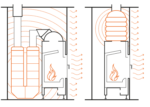 Piece akumulacyjne wyróżniają się długotrwałą akumulacją ciepła i zdrowym promieniowaniem cieplnym. Spalane gazy przepływają przez system ciągu, w którym magazynowane jest ciepło. Zarówno palenisko jak i system ciągu wykonane są z masy akumulującej ciepło, co powoduje, ze akumulowana jest większa ilość ciepła. Zakumulowane ciepło jest oddawane równomiernie do 12 godzin za pomocą promieniowania na płaszcz pieca, a następnie do pomieszczenia. Promieniowanie cieplne z masy akumulacyjnej porównywalne jest z działaniem promieni słonecznych.